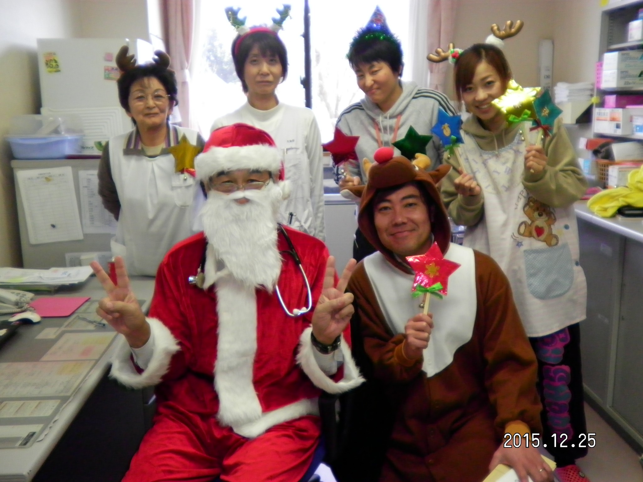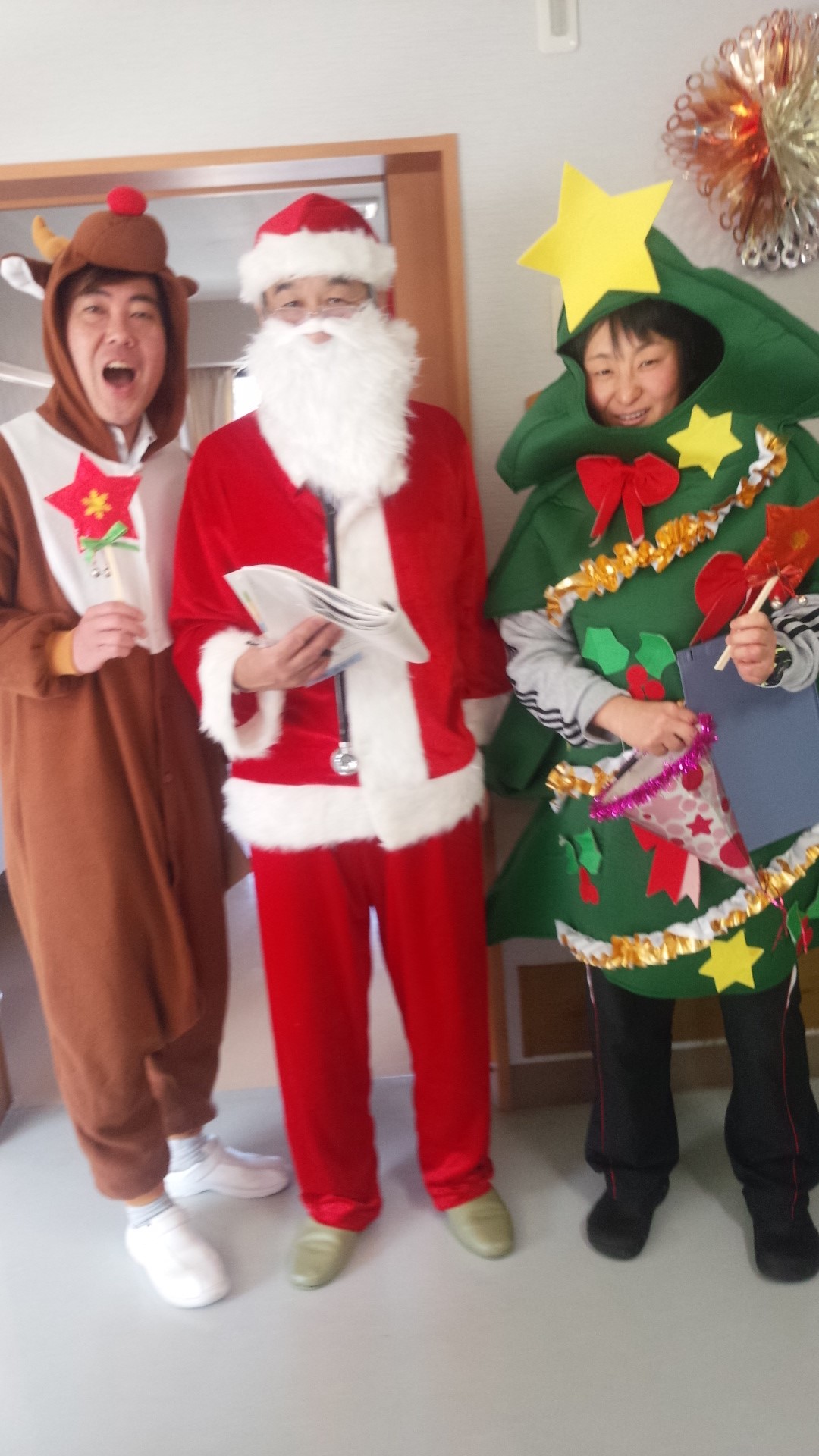 続いてクリスマス回診の風景(笑)三和病院の高林先生にもサンタコスしていただいて私はトナカイ